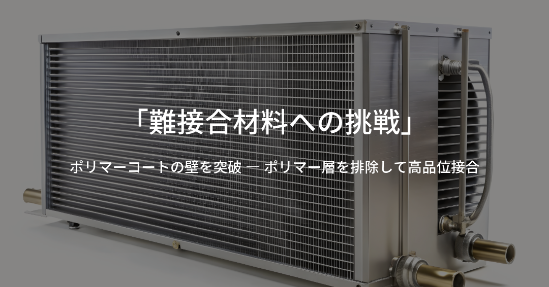 防食コートされたアルミフィンやチューブの接合に応用可能。接合部コート層を壊さず、安定した導通と強度を両立。